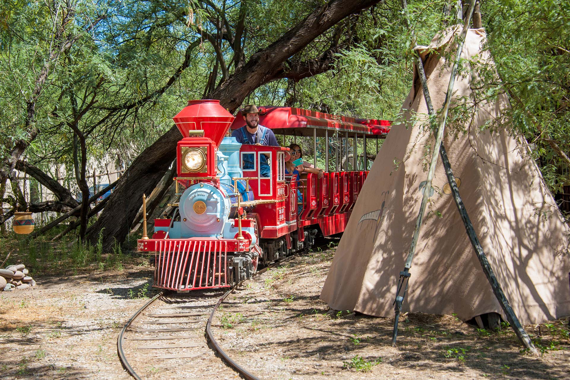 The C.P. Huntington train, Allan Herschell Carousel, and ‘Circle-the-Wagons’ Ferris Wheel operate Thursday through Sunday from 5 pm to 9pm