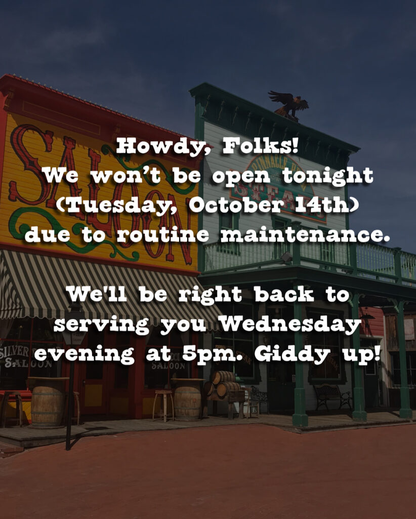 The Pistoleros Wild West Show performs Friday through Sunday at 7 PM and 8 PM.